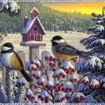 Прилетели синицы, клюют.
